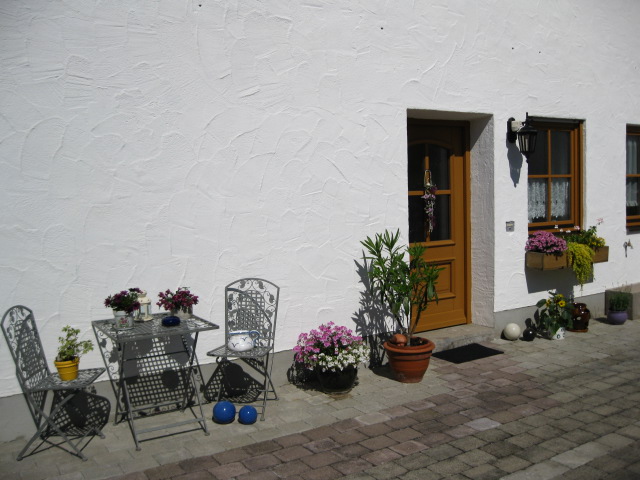 separater Eingang der Ferienwohnung und Parkplatz