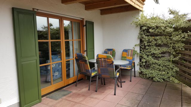 geräumige Terrasse mit Terrassenmöbeln und Grillmöglichkeit